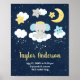 Un adorable petit éléphant avec une couronne d'or assise sur un nuage d'étoiles tombantes. Dans l'arrière - plan est un ciel étoilé, lune jaune croissant or et étoiles mignonnes. Graphiques de PrettyGrafik et DigitalCurio
