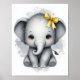 Eléphant mignon en noir et blanc avec une touche de couleur jaune sur le ruban.