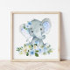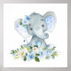 Affiche Éléphant, Safari, Fleurs Bleues, Garçon Chambre de