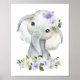 Affiche Elephant, Safari, Fleurs violettes, Neutre Genre