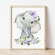 Ajoutez des touches de finition à la crèche de votre bébé ou à la chambre de votre enfant avec ces magnifiques gravures d’art ! Le design présente des éléphants, des fleurs d'aquarelle violette et de la verdure.
