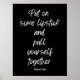 "Mettez du rouge à lèvres et rassemblez-vous" Vous cherchez ce magnifique et unique art mural, en noir et blanc classique, pour décorer votre chambre, votre bureau ou n'importe où vous voudrez ajouter un peu plus d'épices à votre personnalité ? Vous avez fait le bon choix avec cette citation d'Elizabeth Taylor classique et toujours préférée pour l'inspiration et la motivation. Pourquoi attendre ? Faites-le le vôtre maintenant !