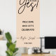 Simple signe de la partie d'engagement calligraphique avec "Elle a dit oui !" en lettres. Différentes options de couleur arrière - plan disponibles. Les noms et la date de l'événement sont modifiables.