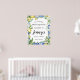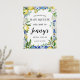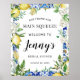 Le panneau de bienvenue parfait pour une fête de mariage sur le thème des citrons. Des citrons nichés dans des fleurs blanches et du feuillage vert s'entrelacent avec des carreaux bleus pour créer un cadre unique.
