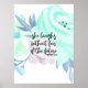 "Elle rit sans crainte de l'avenir" Un verset de proverbes intemporel et inspirant en écriture moderne avec des fleurs d'aquarelle violette et bleue.