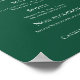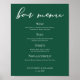 Cette affiche de menu du bar de réception couleur vert émeraude présente un script blanc classique pour un couple se marier dans une forêt ou un autre lieu naturel. Célébrez votre amour avec cette couleur tranquille et coordonnez avec notre collection de typographie minimaliste correspondante.