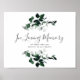 Ce panneau mémorial en souvenir affectueux de verdure émeraude est parfait pour un mariage bohème. Le design élégant mais rustique présente des feuilles de couleur vert foncé et de l'eucalyptus dans un style aquarelle avec une ambiance boisée bohème moderne.