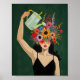 Cette impression d'art présente un tableau d'une femme qui a la tête recouverte de fleurs arrosant les fleurs qui poussent de son esprit contre un arrière - plan émeraude texturé profond.