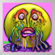 Cette triste émotion est des flots de larmes arc-en-ciel qui coulent et tombent dans une flaque tourbillonnante d'arc-en-ciel. Des couleurs vives et audacieuses tourbillonnent et coulent de ses yeux et sur ses lèvres tandis que cette pauvre fille triste express ses émotions profondes.