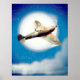 Magnifique affiche de voyage Spitfire - Un avion de chasse Spitfire devant une grande pleine lune.