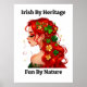 Entrez dans l'univers enchanteur de "Emerald Enchantment" avec cette femme aux cheveux rouges ornée de shamrocks verts et d'accents dorés. Son regard, jeté vers le bas, ajoute une touche de mystère