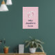 Affiche personnalisée avec une adorable image d'empreintes de bébé rose avec un contour blanc épais. Pois blancs sur un arrière - plan rose derrière l'illustration.