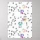 Des pattes pour animaux de compagnie suivent aléatoirement la conception. Grandes empreintes colorées et petites pattes en niveaux de gris. Les feuilles arrière - plans blancs ont beaucoup de place pour customiser avec un nom, etc.