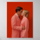Photo minimaliste de deux personnes s'embrassant en costume rose avec un arrière - plan rouge