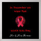 Rejoignez la lutte mondiale contre le VIH/sida en décembre en portant le rouge pour soutenir la Journée mondiale du sida. Promouvoir la sensibilisation au VIH, honorer les survivants, combattre la stigmatisation et montrer sa solidarité avec la campagne du ruban rouge. Ensemble, nous pouvons commémorer les êtres chers et inspirer l'espoir d'un remède.