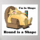 Dessin d'un gros chat qui s'allonge sur sa chaise préférée avec les mots que je suis en Forme, Round est une Forme qui l'entoure. On ne peut pas tous avoir le corps d'un Dieu. Laissez le monde rire avec vous
