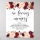 Affiche En souvenir affectueux Panneau de table de mariage
