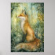 Affiche Enchanted Emerald Forest Fox Art Imaginaire de l'e