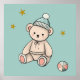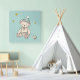 Enchanting children's room design. It features charming illustrations of little teddy with a bonnet. Background light green.