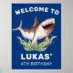 Affiche Enfants Funny Shark Blue Anniversaire Bienvenue