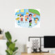 Une scène de classe d'enfants jouant dans la salle de classe. Ce design semble vraiment efficace sur cette affiche