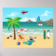Cette illustration amusante ferait un adorable ajout à votre maison ou à votre maison de plage ! Design présente une scène de plage très mignonne où deux enfants ont une explosion en direction du rivage où leur mère dort bronzer avec son ordinateur portable. Quelques canards jouent à proximité, un pilote vole au-dessus de l'eau et un bateau traverse l'océan. Fait un cadeau parfait pour un enfant ou toute personne qui aime la plage!
