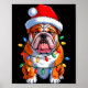 Affiche English Bulldog Dog Christmas Lights Santa Hat Xma