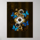 Composition de l'horloge ronde steampunk avec cadran romain noir, décoré avec des engrenages or et laiton, papillons Morpho bleu et lentilles endommagées sur arrière - plan rayé brun. Style Steampunk.