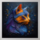 Un portrait captivant qui capte la beauté de la tête d'un chat en regardant dans le style. Cette oeuvre abstraite présente des lignes en relief dans les tons bleu, orange et violet, dressées contre un arrière - plan bleu foncé. Découvrez le mystère de ce regard félin, habillé d'éléments de couleur relief subtils.