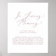 Cette enseigne commémorative délicate rose gold est parfaite pour un mariage moderne. Le design romantique minimaliste présente une typographie élégante et charmante rose poussiéreux sur fond blanc avec un look propre et simple.