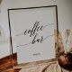 Cette enseigne de bar à café élégante en calligraphie noire est parfaite pour un mariage simple. Le design neutre présente une affiche minimaliste décorée d'une typographie romantique et fantaisiste.