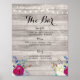 Affiche Enseigne de bar en bois gris avec fleurs roses pou