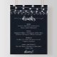 Cette enseigne de boissons de mariage avec guirlande rustique est parfaite pour un mariage simple. Le design présente de belles guirlandes peintes à la main sur un fond bleu foncé.
