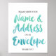 Cette enseigne "Adresse une enveloppe" en calligraphie à l'aquarelle est parfaite pour une baby shower d'été pour garçon. Le design amusant et énergique présente une jolie police de caractères en écriture à l'aquarelle dégradée de vert sarcelle et de bleu aqua. Demandez à vos invités d'adresser une enveloppe de carte de remerciement à eux-mêmes pour éviter à l'invité d'honneur occupé la peine d'écrire toutes les enveloppes.
