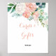 Ce panneau moderne de cartes et de cadeaux de fleurs tropicales roses est parfait pour un mariage de destination ou une fête de mariage. Le design présente de belles fleurs blanches et roses peintes à la main avec des feuilles vertes, représentant la grâce et l'élégance.