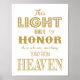 Enseigne de mariage moderne en mémoire d'un être cher "cette lumière brûle en l'honneur de ceux qui regardent aujourd'hui depuis le ciel" imprimé