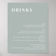 Cette enseigne de menu de boissons de mariage imprimable présente un design moderne minimaliste avec des tons de vert sauge terreux. Utilisez ce modèle pour changer les polices, les couleurs de police et la couleur de fond pour correspondre à votre style d'événement