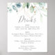 Cette enseigne de menu de boissons de mariage à feuillage vert et feuille d'or est parfaite pour un mariage moderne. Le design botanique élégant présente un eucalyptus aquarelle léger et aérien accentué de feuilles de glitter doré fantaisistes.
