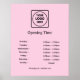Affichez vos heures d'ouverture avec style grâce à ce design de logo personnalisé rose. Parfait pour les bureaux, les espaces de vente au détail ou les devantures de magasins, cette mise en page moderne permet à votre logo d'entreprise et à vos heures d'ouverture de se démarquer. Propre, professionnel et accrocheur — idéal pour une impression de marque soignée.