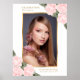 Enseigne de bienvenue élégante de célébration de vie/funérailles à l'aquarelle rose et or avec cadre photo doré orné de roses roses et de fleurs de baby's breath. Articles assortis disponibles.
