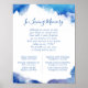 Enseigne mémorielle de mariage imprimée sur mesure avec une bordure aquarelle bleue abstraite pour coordonner avec notre collection Sapphire Tide. Personnalisez-la avec votre texte personnalisé en mémoire de vos proches qui ne sont plus avec vous pour célébrer. Utilisez les outils de conception pour modifier les polices et les couleurs ou téléchargez vos propres photos pour créer une enseigne de mariage unique en son genre.