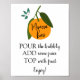 Enseigne de bar Mimosa orange comportant une illustration orange avec les mots "bar mimosa" dans un script de calligraphie amusant.