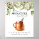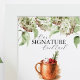 Célébrez votre mariage avec style grâce à nos panneaux de bar à cocktails Signature, mettant en vedette des hortensias verts, blancs et antiques peints à la main à l'aquarelle et un Cranberry Moscow Mule. Les mots « Notre cocktail signature » apparaissent dans un mélange de typographie élégante et classique sans serif, alliant design moderne et charme intemporel.