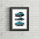 Insufflez votre espace avec nostalgie grâce à ce magnifique graphique qui présente trois voitures d'époque dans des tons rétro. Son design à la fois classique et frappant incarne à merveille l'attrait des automobiles classiques et des styles vintages, ce qui en fait un incontournable pour les amateurs de voitures ou les amateurs de décoration rétro.