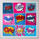 Affiche Ensemble de bulles comiques. Expressions Bom, Cool