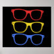 trois paires de lunettes totalement sucrées... en couleurs primaires !