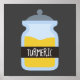 Colorful spice jar illustration with tumeric spice. Yellow and gray cooking kitchen theme for a food lover, home cook or budding chef.