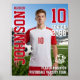 Affiche de sport personnalisée pour athlète et joueur senior. Ce modèle de conception personnalisable est parfait pour l'événement sportif de retour à la maison, la soirée senior, le banquet de remise de prix sportifs ou la décoration de fête de fin d'études pour votre fils, fille ou étudiant athlète. C'est un excellent moyen d'afficher le portrait du joueur et les souvenirs de leurs matchs. Le design présente un fond abstrait et peut être personnalisé avec des noms, le numéro de maillot du joueur, les équipes scolaires ou tout texte personnalisé. Cela fait un cadeau unique et significatif et une décoration pour votre joueur.
