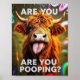 Cette affiche humoristique présente un gros plan d'une vache des Highlands à l'expression contemplative. Le texte "Are You Pooping ?" est superposé dans un style vintage, créant une juxtaposition légère et inattendue. Ce morceau décalé d'art mural est parfait pour ajouter une touche d'humour à n'importe quel espace, en particulier les cuisines ou les salles de bain..., animal, montagne, drôle de salle de bain, vintage, animal sur les toilettes, taureau, vintage photo d'animal, vache sur les toilettes, écossaise haute vache, drôle de photo d'animal, journal de lecture de vache sur les hautes terres, humour, mur, cuisine, cuisine, cuisine, cuisine humour, toilettes, écosse, bétail, mignonette retro photo de vache, animal mignon, toilette art, chambre, salle à manger, salon, bureau, collège, dortoir, fille ado, femmes, journal