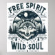 Un design puissant sur le thème du loup avec l'expression "Esprit libre, âme sauvage". L'oeuvre présente un loup majestueux qui regarde en avant sous une pleine lune, entouré de montagnes et de pins, symbolisant l'indépendance, l'instinct et l'énergie indomptée. Ce design est parfait pour ceux qui embrassent la liberté, la nature et l'esprit sauvage à l'intérieur.